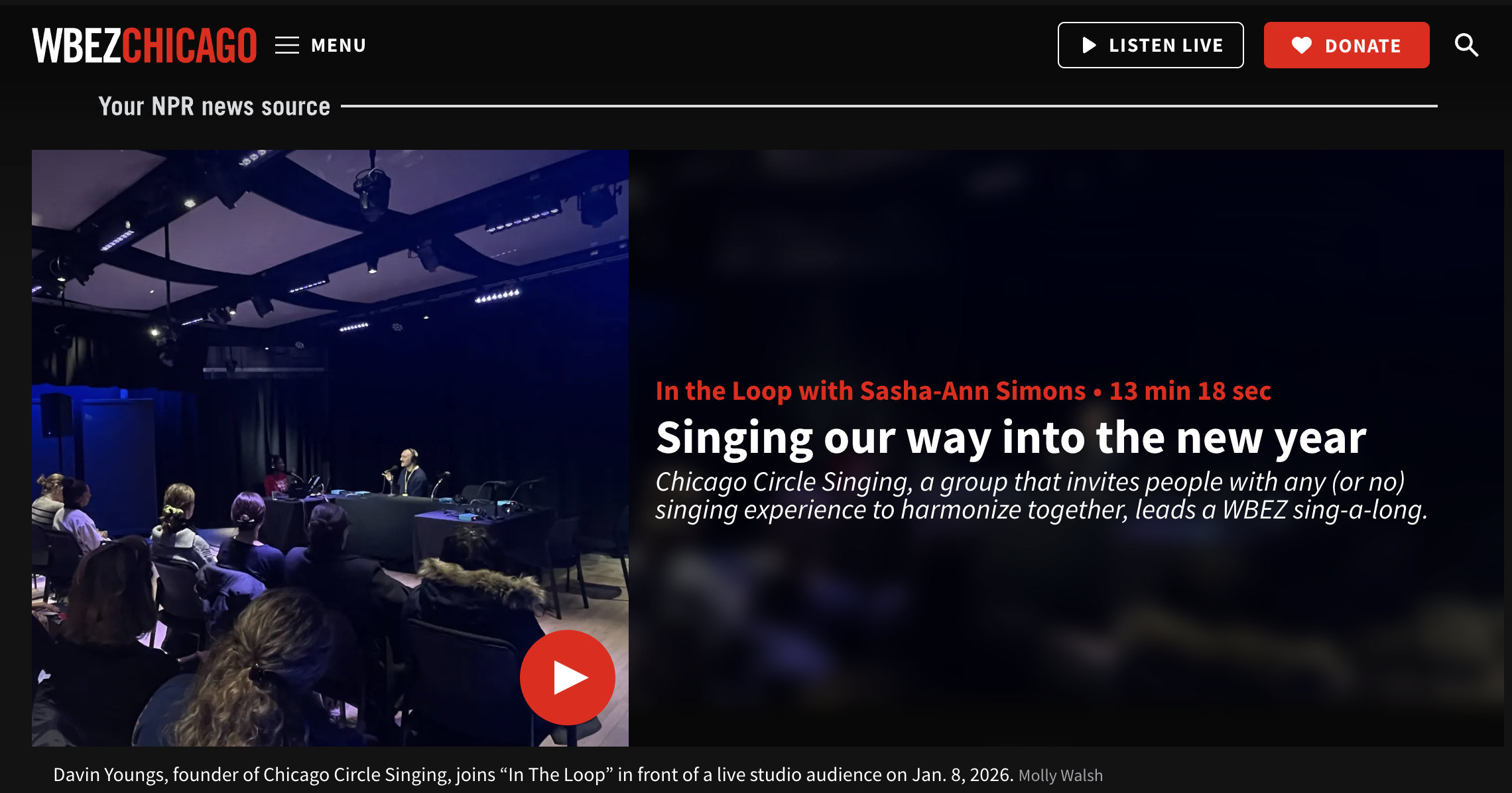 Join us each month in Chicago’s South Loop neighborhood where we create spontaneous music using just our voices!